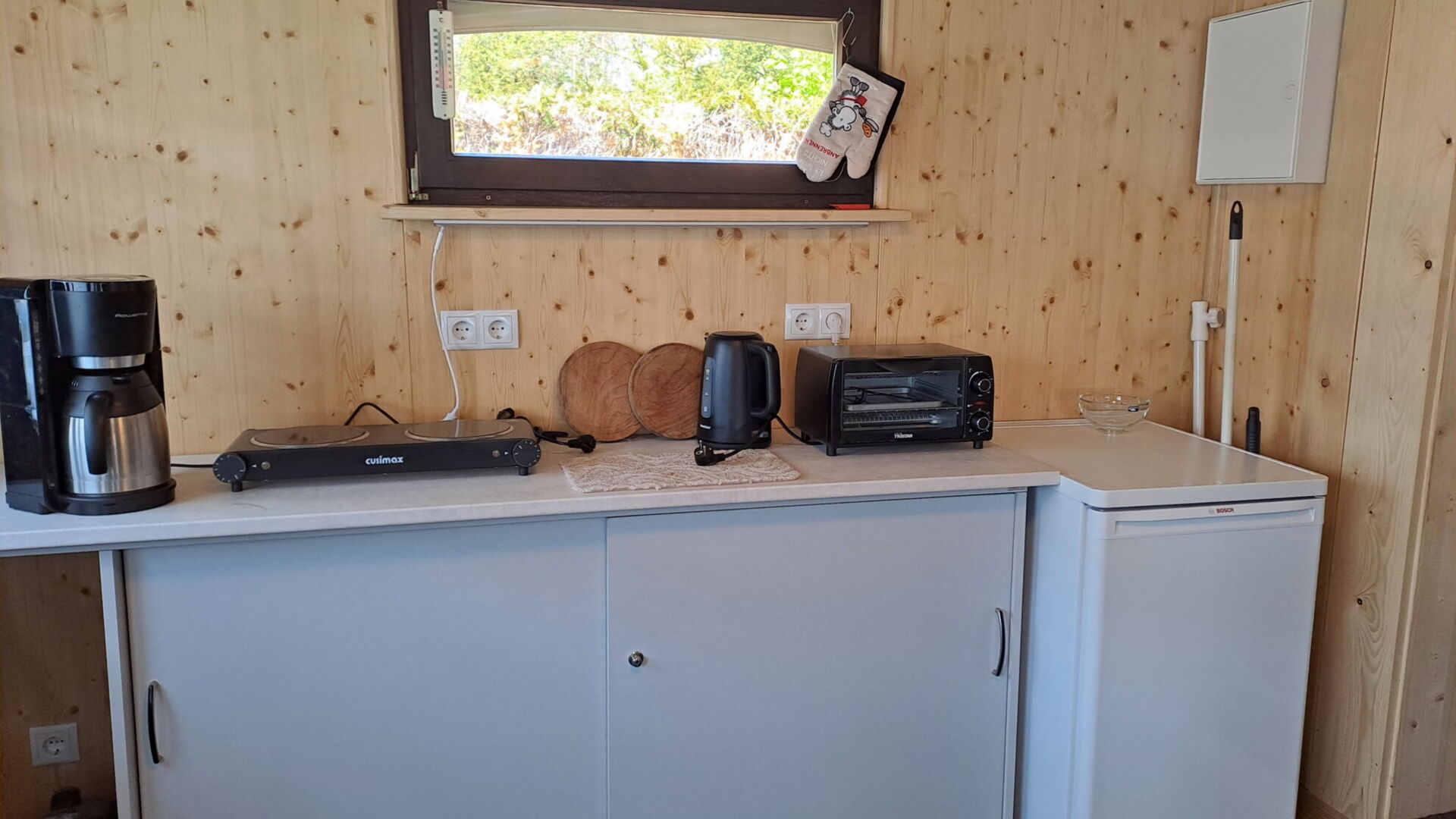 Die Nasszelle im Wohnwagen ist nicht nutzbar. Hierfür steht Ihnen das Sanitärgebäude in unmittelbarer Nähe zur Verfügung.
