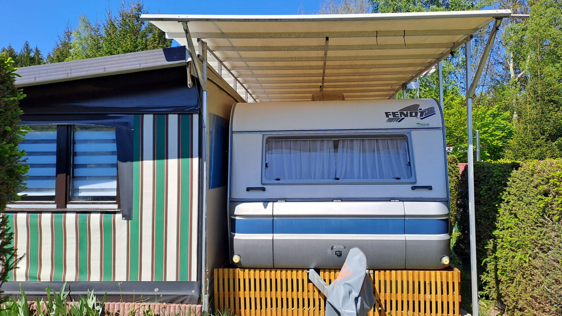 Unser Miet-Wohnwagen befindet sich im Dauercamper-Bereich unweit des Badeteichs in ruhiger Randlage und ist von Ostern bis Ende Oktober mietbar.